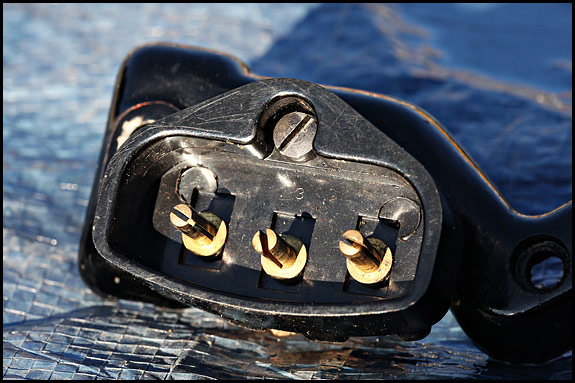 But what, you ask, does it earth to? Well, given that the socket on the machine into which the plug plugs is made of Bakelite, the answer is the that it earths to the only thing it can do – the screw which holds the socket onto the motor mounting bracket!