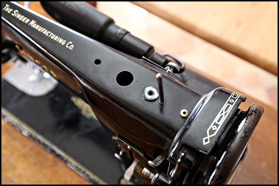 Now if it hasn’t already occurred to you that the diagrams in old Singer books are not always clear about where exactly you’re supposed to be poking the spout of your bottle of oil, it soon will. Don’t worry though, because on a vintage Singer, if it looks like an oil hole, it probably is – especially if it’s on the top of the machine. And if it isn’t an oil hole, you won’t have done any harm by applying a couple of drops of oil there by mistake.