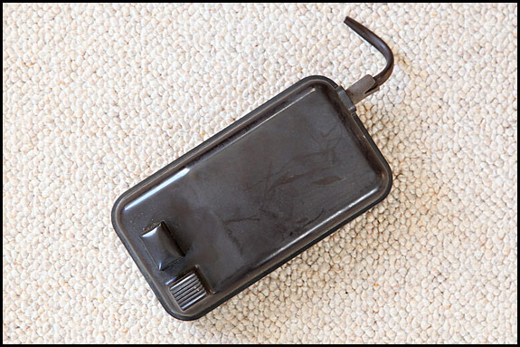 Incidentally, the best way to put the top back on is to poke the button up through it the right way round (top sloping down towards the end), and hold the top of the button whilst jiggling the top of the case down into place. As long as you keep the button vertical, it’ll drop straight over the lever thingy inside as you push the top down.