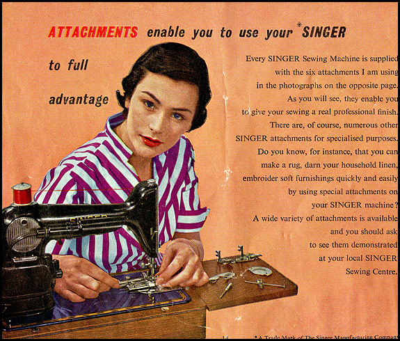 Lovely use of Proper English there, and interesting to think that 60 years ago that wouldn’t have been thought in the least patronising. Or boring. Back then, Singer were still on top of their game. They were the absolute masters at marketing domestic sewing machines, and there’s not the slightest hint anywhere in this brochure of the rot which was soon to set in