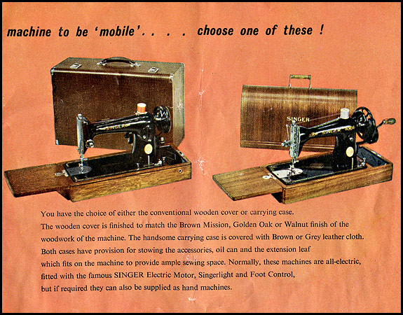 Whatever, note that the text on the page above says “Normally, these machines are all-electric, fitted with the famous Singer electric motor, Singerlight and Foot Control”, yet the 201 illustrated is a knee-lever machine!
